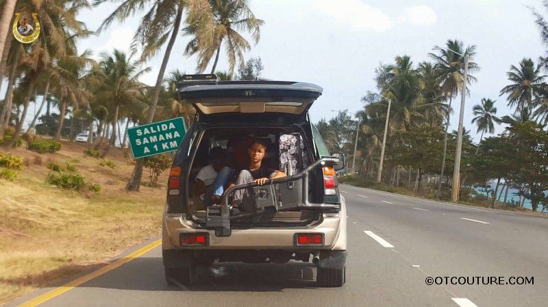 Пассажиры в машине с открытым багажником. Доминикана.