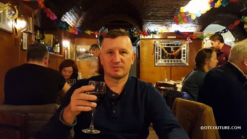Алекс Кутюр с бокалом вина, «Taverna San Trovaso», Венеция